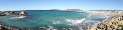 Na het ontbijt worden de fietsen van het rek gehaald en fietsen we naar Tarifa-stad 9 km verder. Op de heenreis fietsen we heerlijk met windje in de rug. We bekijken het stadje op de fiets. We vragen tijden en tarieven van de boten, eten buiten op terras Paella.