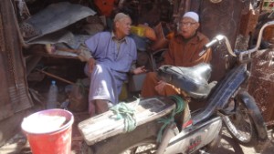Het is weer door een wirwar van smalle straatjes. We zijn dus ook achter zo’n jongen aangerend. Wat een vies, smerig en ongezond werk is dat. Wel leuk om te zien, maar afschuwelijk om er te werken.
