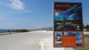 12 april. We gaan over de E55 van Parga naar Kanali (noord van Preveza) We rijden langs een bezichtiging nl. “het Dodenorakel”, maar is gesloten, want het is vandaag Pascha (Pasen). Hier is de gewoonte om een lam aan spit te roosteren met Griekse muziek erbij. Daarna kijken we nog bij een camperplaats, die niet bij iedereen bevalt. Terwijl we een steile weg opgaan vanaf de stelplaats, valt de Laptop met een grote knal uit de kast. We hebben geluk, hij doet het nog. We slaan af bij Kanali Beach, waar we weer een plek vinden naast het strand. We wandelen, pakken een terrasje voor een drankje en blijven er overnachten.
