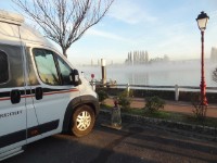 23 febr. Vertrek via Westerscheldetunnel (tolvrijweekend), Gent, Lille, Arras(D939 of N25), Aberville (A28), Rouen naar La Bouille. (alles tolvrij) (N 49.35096 - E 00.933343) Er vaart hier een pontje over de Seine. ’s Nachts koud. 24 febr. Van La Bouille(438), Alencon (338), hier wel veel