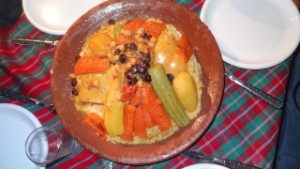 ’s Avonds eten we met zijn vieren een grote schaal Cous Cous op, die door Ali wordt bezorgd en door zijn vrouw is gemaakt. Hij doet dit op een brommertje, zoals bij ons de Pizzama