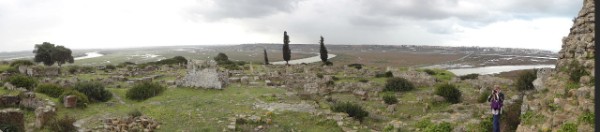 Zaterdag 7 febr. Vanmorgen op het gemak, daarna op pad naar de volgende bestemming. Deze keer pakken we geen tolweg en dat merk je goed. De weg is regelmatig verzakt, is modderig en er zitten putten in, dus best oppassen geblazen. We letten goed op snelheid en verkeersborden, want we merken, dat er heel veel politie controle is. We rijden eerst naar Lixus, een archeologische vindplaats met ruïnes van 3000 jaar geleden. Deze staan zelfs op de Werelderfgoed van de Unesco. Een gids leidt ons rond en we zijn ruim een uur onderweg, waarbij hij ons vertelt wat die paar stenen, die nog overeind staan vroeger hebben voorgesteld. Zo zien we de pekelbakken voor vis, het badhuis, het theater, de kathedraal, de fam. woningen en de moskee en tempel. Interessant? Voor sommigen wel, voor mij niet echt. Ook hebben we af en toe wat regen tijdens de excursie.