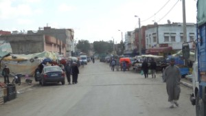 Dan belanden we in het drukke verkeer van Tanger, en omdat de GPS het nog niet gelijk doet en er werkzaamheden zijn, worden we door een smallere straat gestuurd, maar blijkt toch goed te zijn.