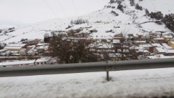 Het gaat heuvel op heuvel af met prachtig zicht op besneeuwde bergen. We rijden zelfs een stuk tussen sneeuwlandschappen tot Burgos. We moeten zelfs tot 1000m stijgen.