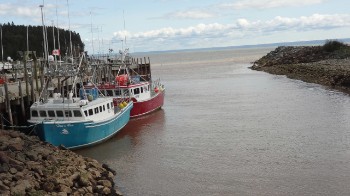 1. Bij de Bay of Fundy zien we weer het grote tijverschil tussen eb en vloed bij Maitland, vooral ook bij Burntcoat Head, Wolfsville en Halls Harbour.  Het haventje van Digby is leuk gelegen. We blijven hier 2 nachten, omdat we ook het schiereiland Digby Neck willen bezoeken. Helaas verstoort de mist ons plan, we zijn op pad geweest. In Digby is het weer helderder en later zelfs zonnig. We sorteren alvast spullen en kleren voor de terugreis en liggen anderhalf uur in de zon. Ook gaan we er uit eten en genieten van de St. Jacobsschelp schotel en de Fisherman schotel.
