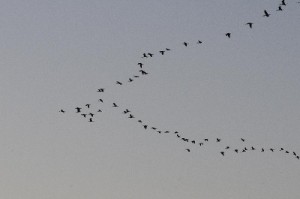 s Middags na de lunch pakken we de fietsen om naar het stadje te rijden. Door onze vogelaars gaan we de andere kant op, want daar ontdekken ze het natuurgebied, wat hier moet zijn. We zien verschillende vogels en een hele groep zwarte Ibissen op een veld. Helaas schrikken die zo van ons, dat ze hun vleugels spreiden en maken dat ze wegkomen