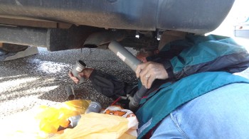 10 april. We blijven nog een dag in Igoumenitsa. Vanmorgen gaat Sjaak onder de camper en wordt de afvoer weer gemaakt. We kunnen weer water gebruiken, zonder dat het er vanonder uitloopt.