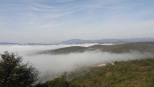 Via wegnr 20 nemen we de afslag naar Monodendri. Onderweg door groen heuvelachtig gebied. We zien enkele traditionele Zagori dorpen, die gekenmerkt worden door klinkerstraatjes en leistenen daken. Hiervan is Monodendri er ook één, tevens het dorp met prachtig uitzicht op de Vikoskloof. Dat moeten we natuurlijk ook zien. We lopen over de hoge richel om in de kloof te kijken. Het is duizelingwekkend als je te lang naar beneden kijkt. Het dorpje Monodendri is een van de toeristische plekjes, omdat hier veel wandelingen beginnen. Aan eind van de middag alweer een paar druppels en twee onweersklappen. We slapen er op een parkeerterrein, ’s nachts heel rustig.