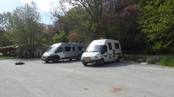 20 april. Van Methoni naar Kalamaria ( 15 km van Thessaloniki) Voordat we Thessaloniki voorbij rijden, proberen we nog een vogelgebied in te gaan, maar we kunnen het niet vinden. We rijden door Thessaloniki naar de camperplek in Kalamaria, waar we bij een caravandealer mogen staan en overnachten. Omdat de dag met bewolking begint, rekenen we niet meer op een stralende blauwe lucht met zon. We zijn de middag hier gebleven en gaan morgen met de bus naar Thessaloniki om de stad te bekijken. We zitten hier in de buurt van het vliegveld en worden bewaakt door een hond. Ben benieuwd hoe de nacht zal gaan: met opstijgende en dalende vliegtuigen of met hondengeblaf, of is het misschien lekker rustig?? Je hoort het nog….Sjaak heeft hier zijn propaan gasfles afgegeven, die gevuld moet worden. Dit duurt 1 of 2 dagen.