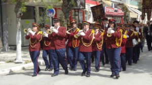 23 april. Van Asprovalta naar Keramoti Vanmorgen behoefte aan een korte wandeling. We lopen door het dorp en horen in de buurt van de kerk muziek. We komen te weten, dat er rond 11.00u een processie zal zijn na de kerkdienst ter ere van St George. We overleggen met onze vrienden,die doorgaan om te vogelen bij een paar Lagunes. Wij blijven wachten op de processie en gaan daarna door naar Kavala om dat te bekijken. Onderweg zien we bij een lagune nog honderden flamingo's
