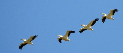 De service op de camping is prima. We hebben gratis Wifi en de wasmachine is ook gratis te gebruiken. Dat komt goed uit, want heb nog een paar wasjes te doen, de droger is de zon en de wind. De verzorging van de camping staat op een laag peil. Ieder persoon, die er werkt doet de hele dag niks. De één zit in de zon en drinkt koffie, de ander kletst of staat wat te kijken, terwijl er volgens ons heel wat kan gebeuren. Is dit Griekenland? ? ?Sjaak en ik maken vandaag nog een flinke tippel langs het strand van anderhalf uur. ’s Avonds na het eten, gaan we het natuurgebied nog een keer in. De vogelaars zien allerlei vogels, waarvan wij denken “die zien ze vliegen”. Ongelooflijk, wat die allemaal zien. Helaas komt er bij ons niks van in beeld, daar hebben wij geen goede camera voor. Het is te ver, of ze zijn ons te snel af. Tot slot zien we nog twee Kroeskop pelikanen, maar ook te ver weg voor de foto. Cock heeft er wel verschillende geknipt, maar ja die heeft een telelens. De foto zijn een paar Kroeskop pelikanen