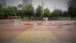 Vandaag rijden we eerst naar Sandy Springs, waar we de trein naar Atlanta nemen. Het giet van de regen.