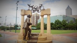 We lopen naar het Olympisch Park, midden in de stad. Hier hebben in 1996 de Olympische Spelen plaatsgevonden.