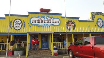 Op de camping bestellen we gelijk de Big Texan, een super Steakhouse, waar we Sjaak' s verjaardags etentje houden. We worden er met een limousine heen gebracht en gehaald. Het is heerlijk!