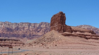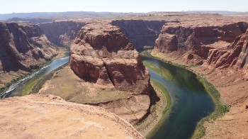 We besluiten op het laatste moment naar de Marble Canyon te gaan, die voor Page ligt. Hier zie je de Colorado River met zn prachtige groene kleur. Op weg terug naar Page komen we langs de Horse Shoe Blend, waar we de hike ernaar toe nemen. Het is tegen de 40 gr en op borden wordt goed schoeisel en voldoende drinken mee te nemen.