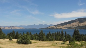 Daarna rijden we langs het blauwe Flathead Meer naar West Glacier naar de camping